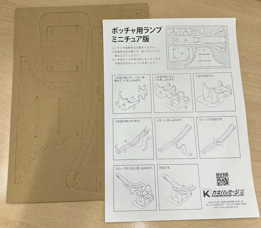 段ボール製の初心者用ランプは、注目されているスポーツ「ボッチャ」を普及させるために役立つノベルティグッズです。低コストで製作可能なミニチュア版としてイベントで配布することで、より多くの人々にスポーツの魅力を伝えることができます。