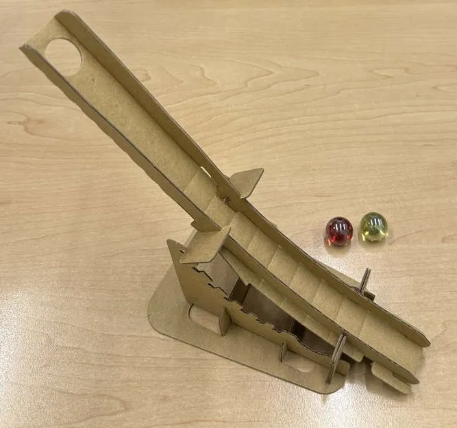 そこで段ボールで初心者用のランプを作成しましました。今回の製品はイベントで配布するノベルティグッズとしてのミニチュア版になり、ビー玉を使って遊べるサイズです。