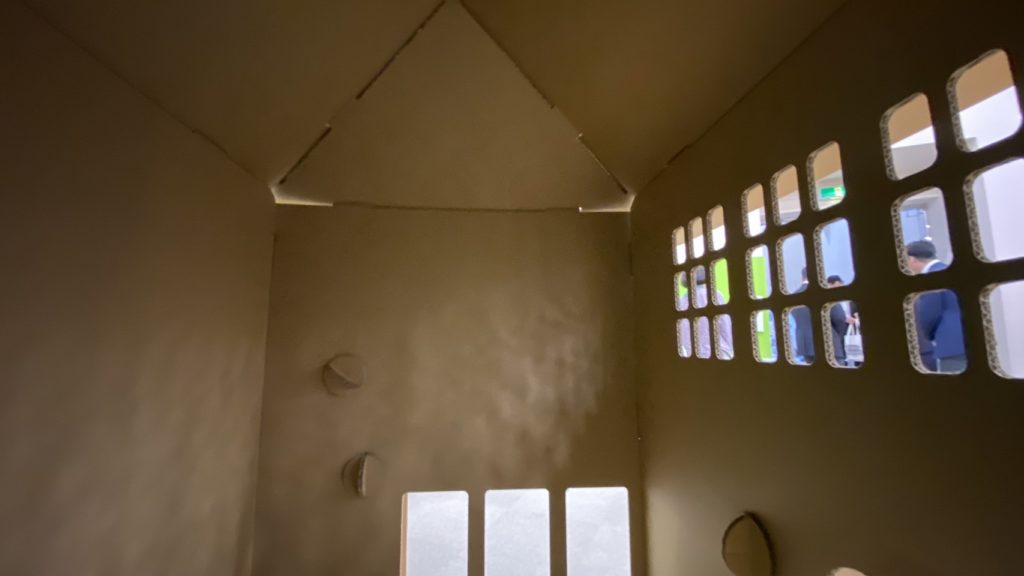 この空間は、ただの段ボールではなく、地域の歴史を守り伝える技術の結晶です。中から見ることで、段ボールの新たな可能性とカネパッケージ株式会社の技術力をぜひご体感ください。