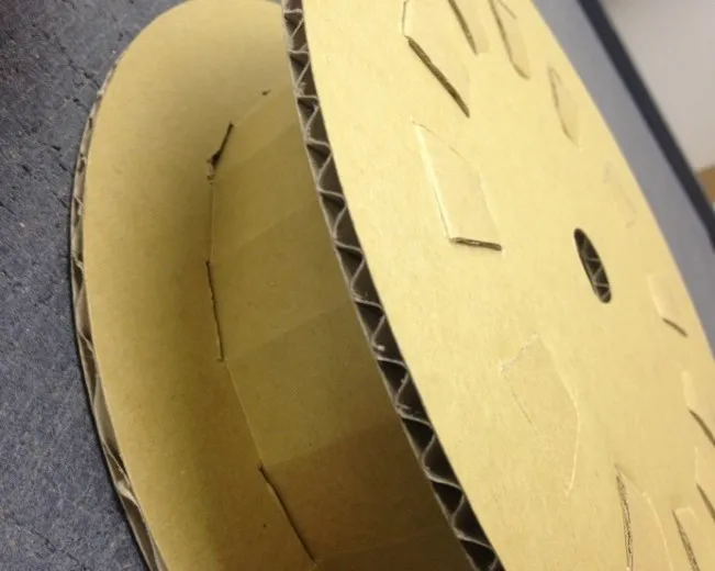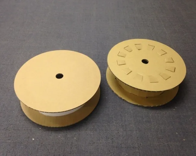 紙管を使わず段ボールだけで組み立てられる円形のボビンを提案!