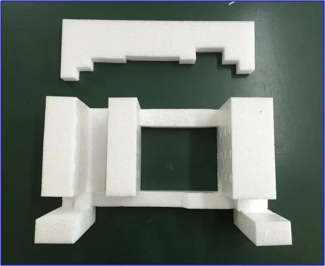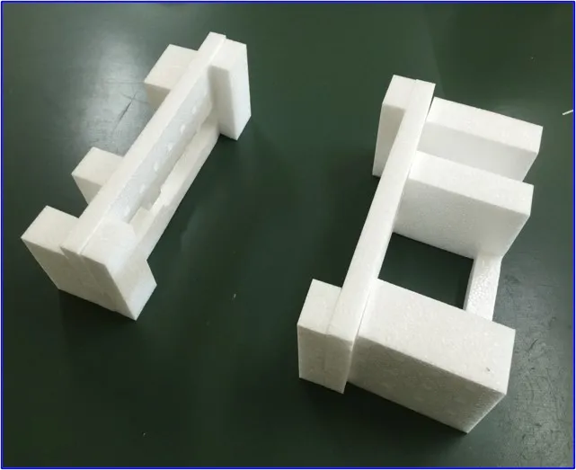 製品梱包時に中央部を触りたくないとの要望があり、画像の左右側から製品を掴まなければならないが、左右の緩衝材では製品をセットしにくく、作業性の改善も求められていた。