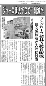 宮崎県日向市にあります日向製錬所様の工場敷地内に、九州初となりますマングローブ植林支援の自動販売機を設置致しました。