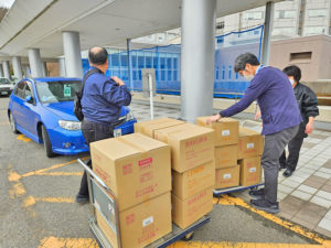 令和6年3月11日・12日の両日。能登半島地震で被災した石川県の4病院へ(株)三幸製作所、(株)興伸工業が製造している医療機器をカネパッケージグループから寄贈致しました。